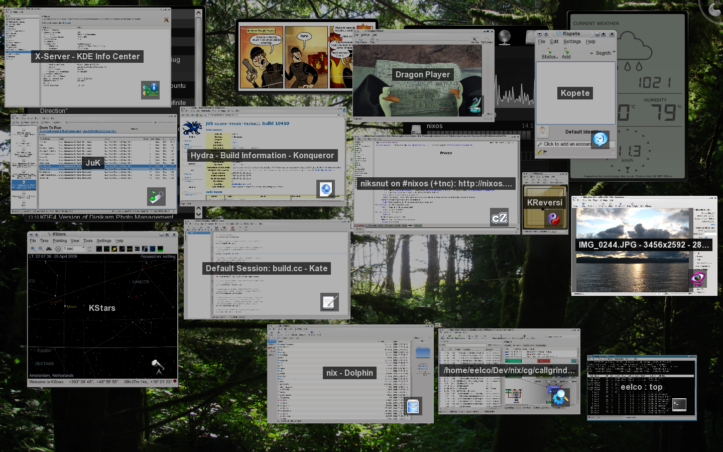 We now have a fairly complete set of KDE 4.2 packages in Nixpkgs and NixOS. Previously we had KDE 3.5, but it was rather incomplete: just kdelibs and kdebase. Now we have all that desktop goodness, such as kdemultimedia, kdenetwork and kdegames. You can enable KDE 4 in NixOS by setting the services.xserver.sessionType option to kde4. Thanks go to Yury G. Kudryashov, Andrew Morsillo and Sander van der Burg for doing the hard work on adding KDE 4 to Nixpkgs. (Screenshot 1, screenshot 2)